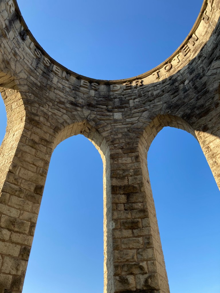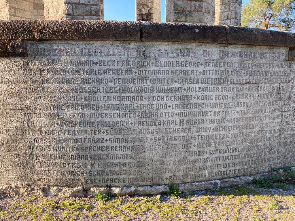 Außerdem verzichtet das Denkmal auf christliche Bezüge, wenngleich die meisten Toten und ihre Angehörigen wohl christlichen Glaubens waren. Der Altar wird zum Weihestein mit dem Stahlhelm, der soldatischen Pflicht, als höchstem Gut. Spannend ist, dass die Toten kein Geburts- und Sterbedatum haben. So verschmelzen sie zu einer Einheit. Es entsteht der Eindruck einer Gruppe, die für ein gemeinsames Ziel gekämpft hat – auch wenn die Soldaten an verschiedenen Fronten kämpften und sich im Zweifel nicht kannten. Alles, was von ihnen bleibt, ist ihr Name und ihre militärische Einheit.