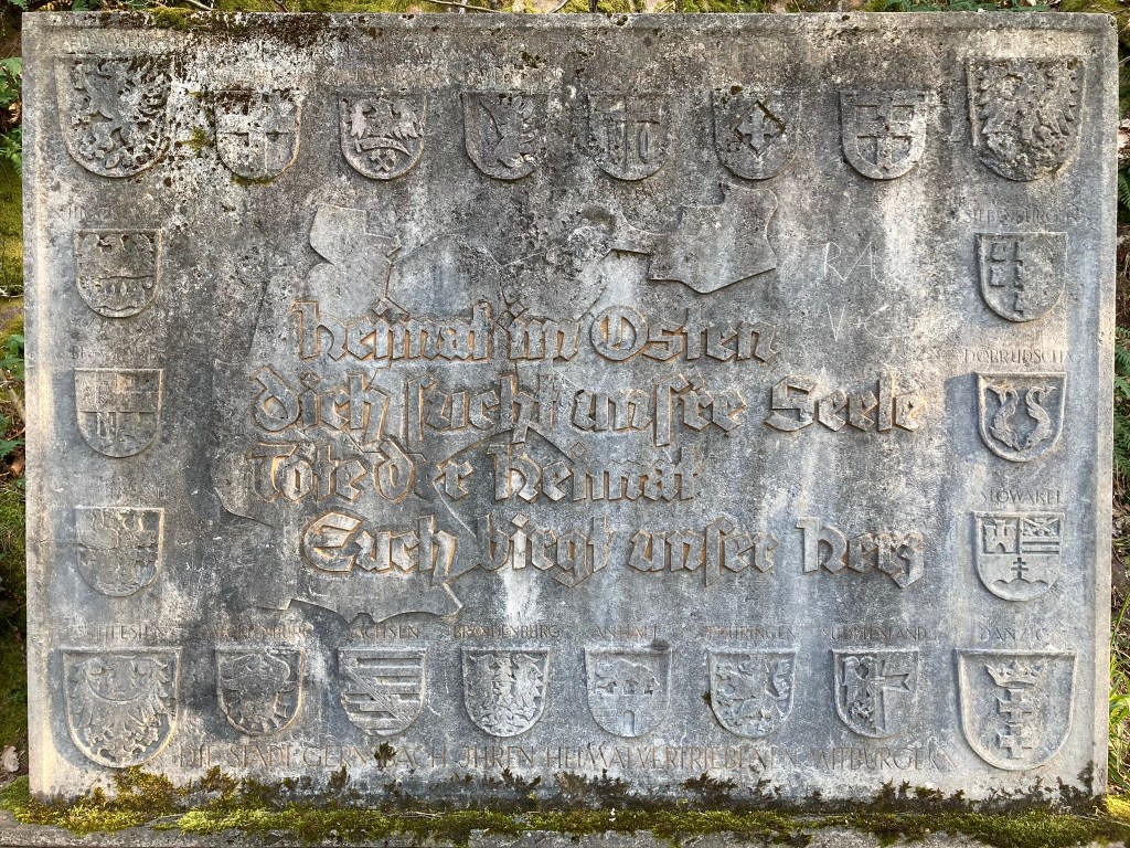 Auffällig ist für mich vor allem die Gleichsetzung der DDR mit den vormals deutschen Gebieten wie Schlesien, die nun größtenteils zu Polen oder zur Tschechoslowakei gehörten. Das habe ich in der Form selten gesehen. Die Initiative für die Gedenktafel ging vom örtlichen Verband der Heimatvertriebenen aus. Vermutlich waren relativ viele Vertriebene in Gernsbach gelandet. Sonst wären sie zahlenmäßig kaum so ins Gewicht gefallen, dass die Stadt einen Gedenkort für sie eingerichtet hätte. Häufig hatte sich ihr Empfang in der unmittelbaren Nachkriegszeit eher negativ gestaltet. Angesichts dessen war die Tafel vielleicht auch eine Anerkennung oder eine Versöhnung von neuen und alten Gernsbachern.